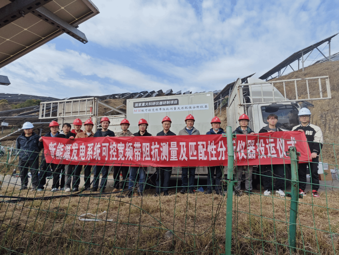 11月25日,在国家重大科研仪器研制项目《MW级可控宽频带阻抗测量及匹配性分析仪器》和国网四川省电力公司科技项目的资助下,西南交通大学何正友、胡海涛、陶海东团队牵头,联合国网四川省电力公司电力科学研究院共同研制的新能源发电系统可控宽频带阻抗测量及匹配性分析仪器,在攀枝花市布德光伏电站圆满完成了光伏并网逆变器的宽频带阻抗测量实验。