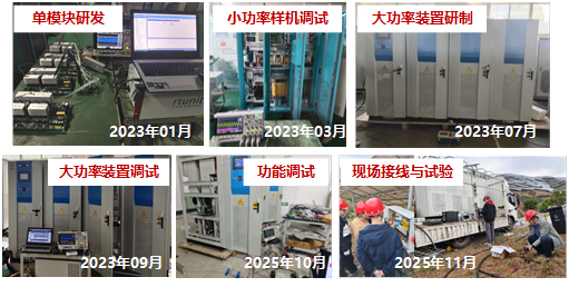 此次现场测试得到了国网四川电科院、国网四川省电力公司攀枝花供电公司、布德光伏电站等单位的大力支持。该仪器以串联谐波电压源形式注入激励信号,实现了低频谐波(10Hz)、高频谐波(10kHz)、宽频带谐波注入等核心技术指标。重大仪器项目历时5年,顺利完成了项目立项、技术方案评审、生产研发、施工调试、现场示范等多个阶段。仪器先前于2024年7月在渝昆高铁友助村牵引变电所实现了并联谐波电流源接入的宽频带阻抗测量。