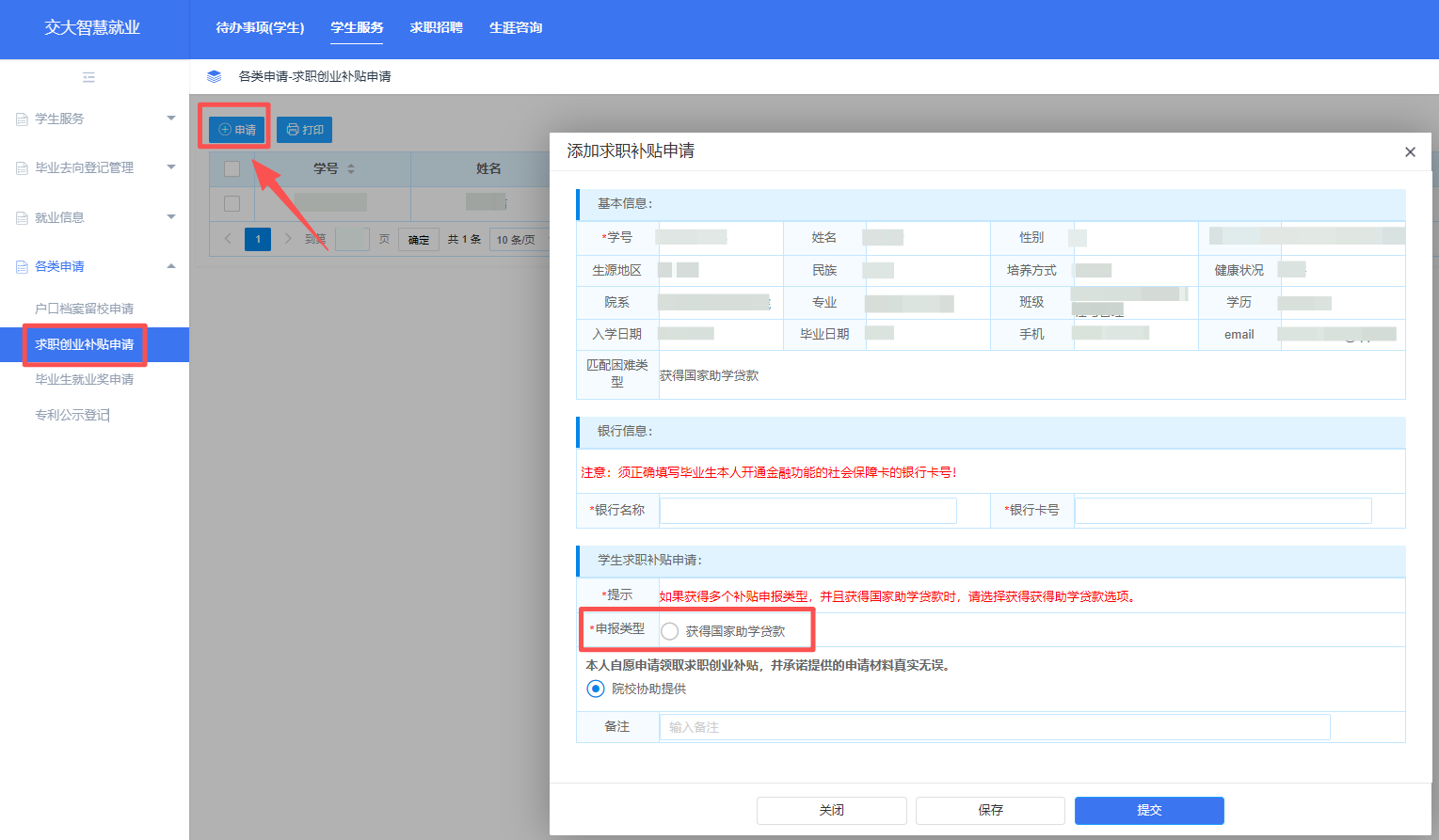 申请后请各位同学下载打印《成都市一次性求职补贴申请表(含身份证复印件)》(附件1)并签字,连同已开通金融功能的社会保障卡正反面复印件在11月25日前交至学院学工组【本科生交至电气馆X10201就业小组处;研究生交至各自辅导员处】。